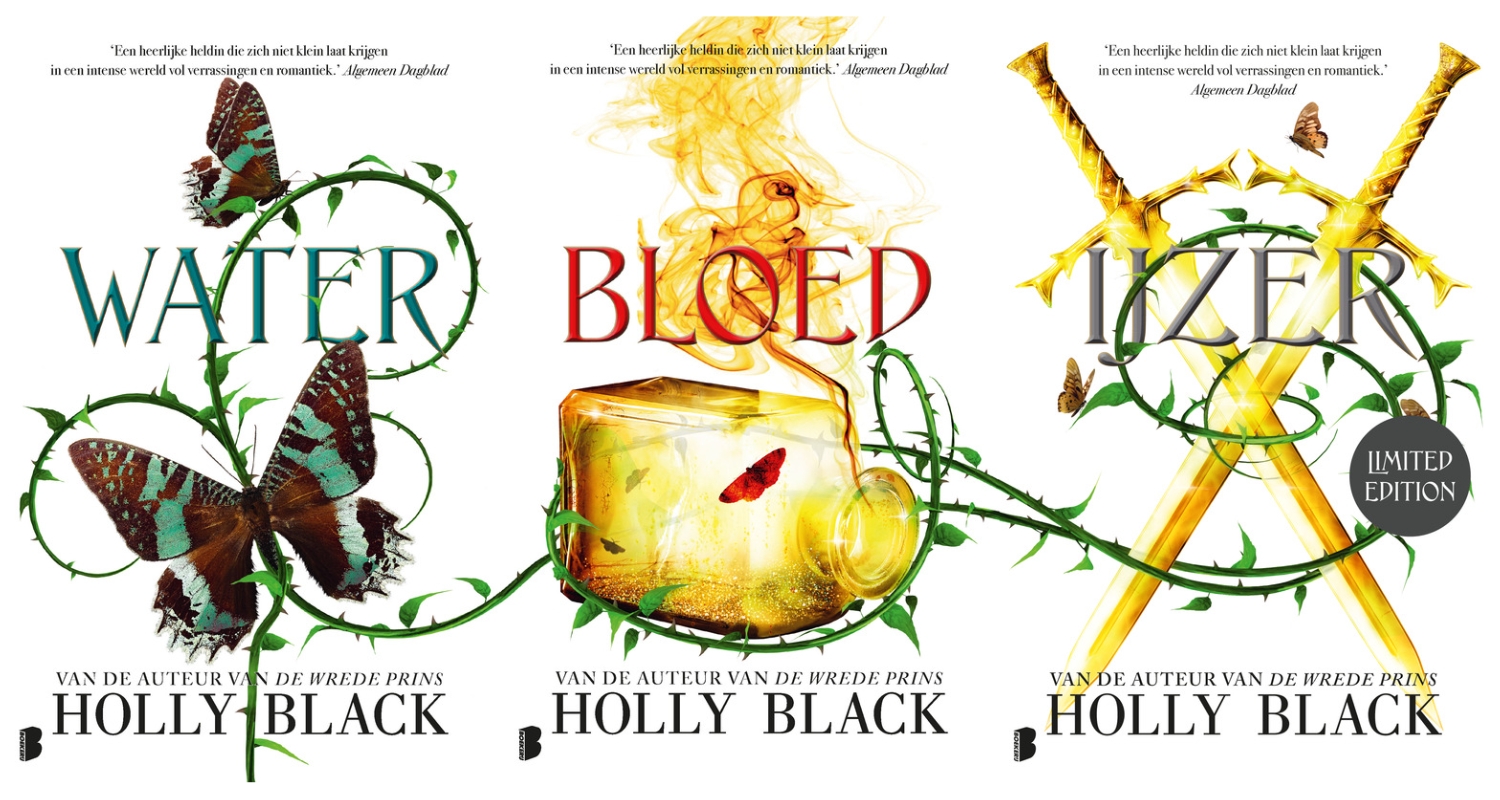 Wel heb ik dus het gevoel dat deze trilogie ook een tweeluik had kunnen zijn. Het tweede boek, Bloed, lijkt weinig toe te voegen aan de verhaallijnen van Water (het eerste deel) en IJzer. Maar IJzer is weer precies wat ik van Holly Black verwacht: steengoed. Dat het verhaal dan eindigt met een megacliché van “happily ever after”, vergeef ik haar dan maar!