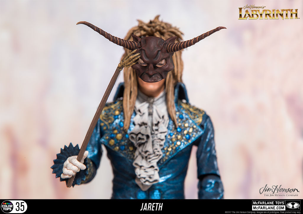 Nu gaat McFarlane Toys samenwerken met de Jim Henson Studio om figuren uit te brengen gebaseerd op The Labyrinth en The Dark Crystal. In november wordt het eerste figuur uitgebracht: Jareth the Goblin King uit The Labyrinth. Het figuur zal zo’n 18 cm lang zijn en is een prachtige gelijkenis van David Bowie, die de Goblin King in de film speelde. In zijn ene hand houdt hij een glazen bol vast, waarmee zijn magie tot leven komt. In zijn andere hand zien we het masker die hij draagt tijdens de balscene, waarin hij danst met hoofdrolspeelster Jennifer Connelly.