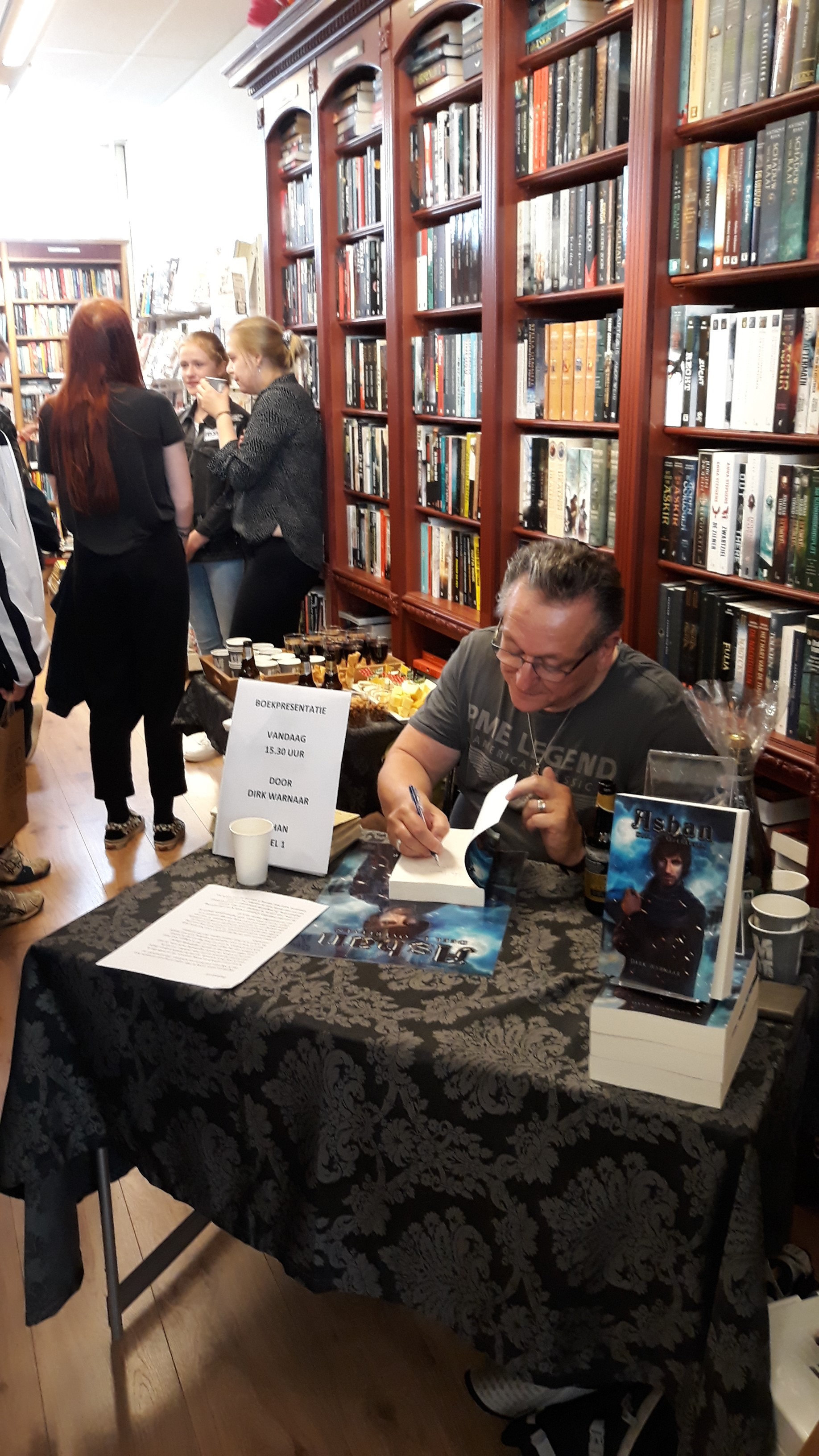 Ook debutant Dirk Warnaar presenteerde onlangs zijn boek – Ashan, Deel I – Overleven – in de prachtige boekhandel ‘Hoofdstuk Een’ in Brielle. Dirk schrijft het liefst over echte mensen in een wereld die ergens zou kunnen bestaan. Overleven is het eerste deel van het avontuurlijke fantasy-tweeluik Ashan. Het verhaal speelt zich af in ‘de Stad’, een plek die al honderden jaren volkomen geïsoleerd is en een wereld op zich is geworden. De rijke erfgenaam Belim Parsis is niet gelukkig met zijn gemakkelijke leven. Als tijdverdrijf verovert hij onder de schuilnaam Ashan stiekem zijn plek als kooivechter in de Stad. Na een dubieus gevecht en het overlijden van zijn geliefde onderwijzer, neemt hij een drastisch besluit. Belim moet zich – geholpen door zijn slimheid – staande zien te houden.