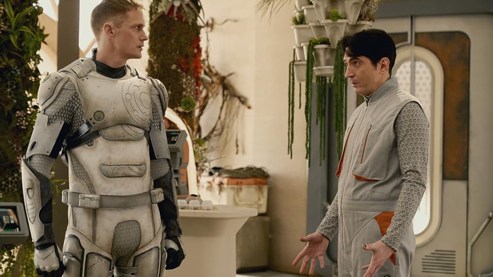 Murderbot is vooral het verhaal van een kunstmatige intelligentie in de vorm van een construct dat moet leren wat het betekent om een persoon te zijn. Een persoon met de vrijheid om keuzes te maken en relaties aan te gaan en voor zichzelf uit te vinden wat het belangrijk vindt. Dat levert vaak sociaal ongemakkelijke situaties op, die Alexander Skarsgård als Murderbot zeer overtuigend en zeer herkenbaar weet neer te zetten. De misantropische en pessimistische voice over van Murderbot is ook herkenbaar voor iedereen die zichzelf regelmatig in wanhoop afvraagt hoe mensen zo hopeloos stom kunnen zijn. En soms ook enige moordneigingen moet onderdrukken.