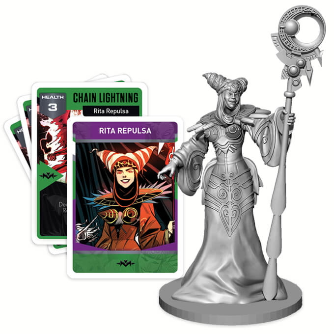 Het bord zelf is van stevig karton en kan je op verschillende manieren opstellen. De tokens zijn groot en stevig. Alle kaarten zijn voorzien van een prachtige animatiestijl die toch passend aanvoelt bij de oorspronkelijke serie. Als fan zou ik eigenlijk niet mogen klagen, al moet ik bekennen dat ik de figuren liever kleiner had gezien. Ze zijn nu rond de zes centimeter, wat een stuk groter is dan miniaturen uit andere spellen, zoals bijvoorbeeld Gloomhaven. Waren de spelfiguren van een gebruikelijker formaat geweest, dan had je ze ook nog kunnen integreren in andere spellen. Maar dat is overigens heel persoonlijk, want voor dit spel alleen, werkt het allemaal prima.