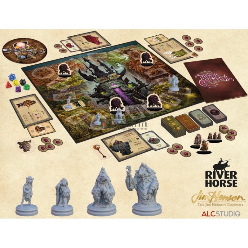 • Spelbord met prachtige illustraties van al de bekende plekken uit de film: Aughra’s Observatory, the Valley of the Stones en the Crystal Castle.